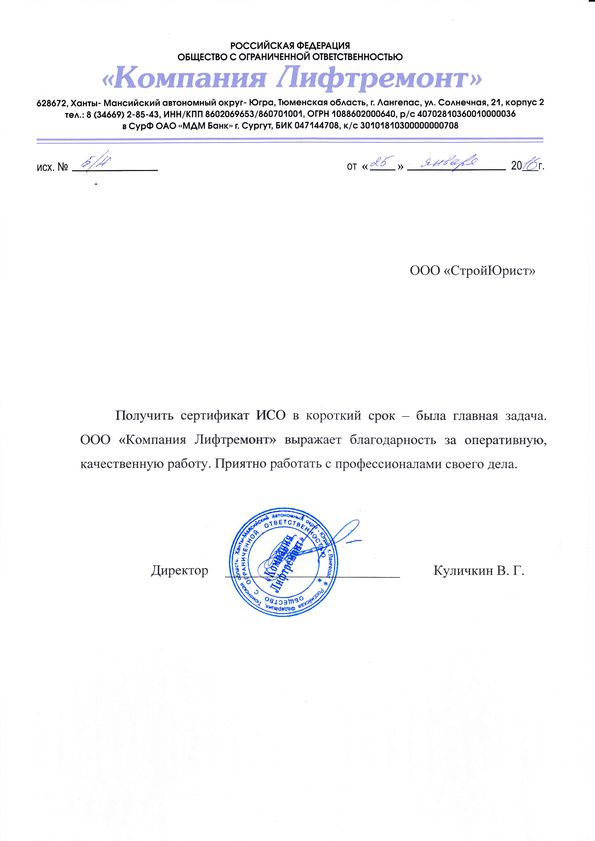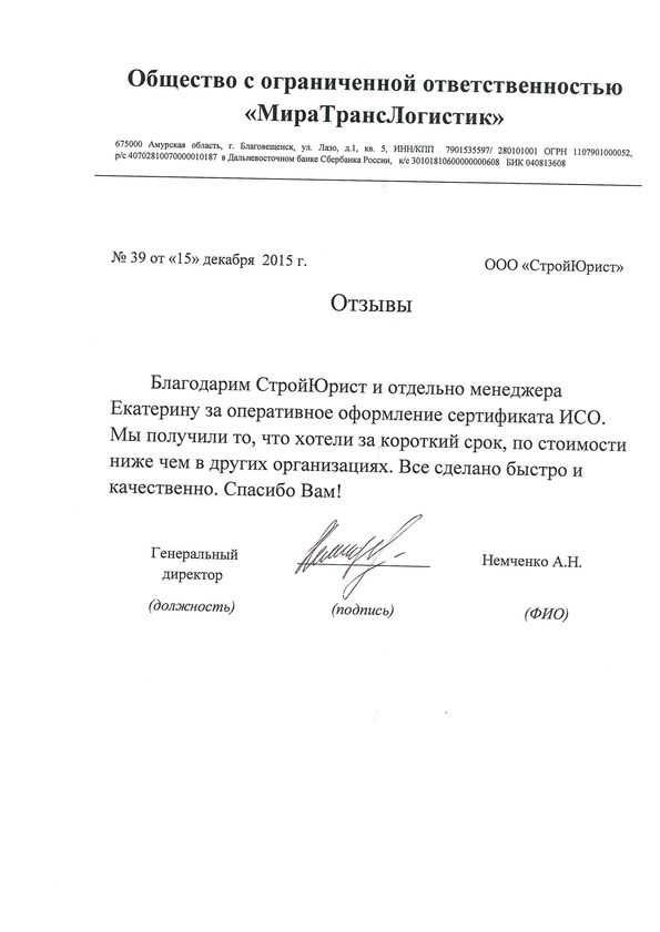 Отзывы клиентов "СтройЮрист" по ISO в Щелково
