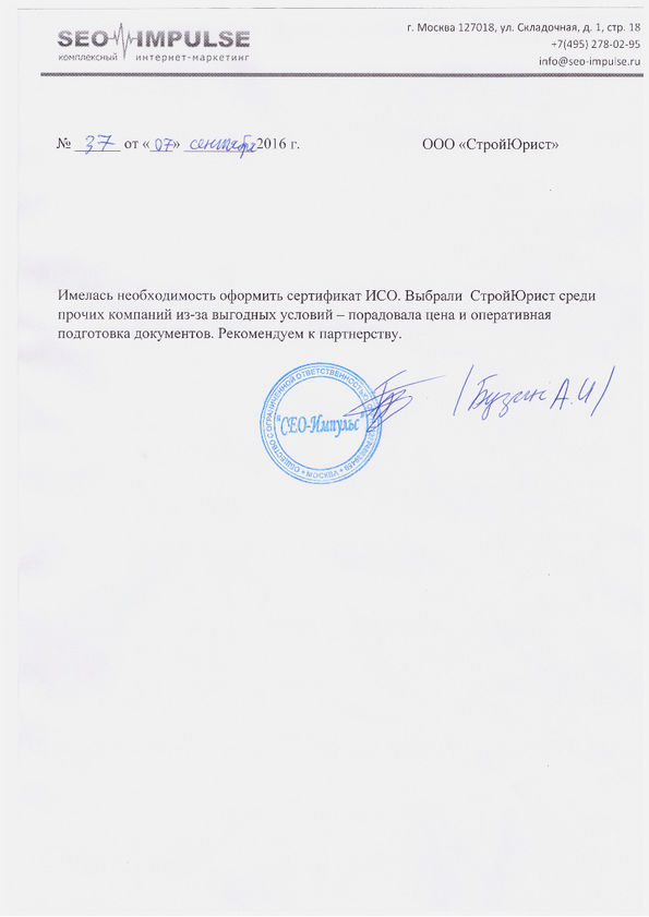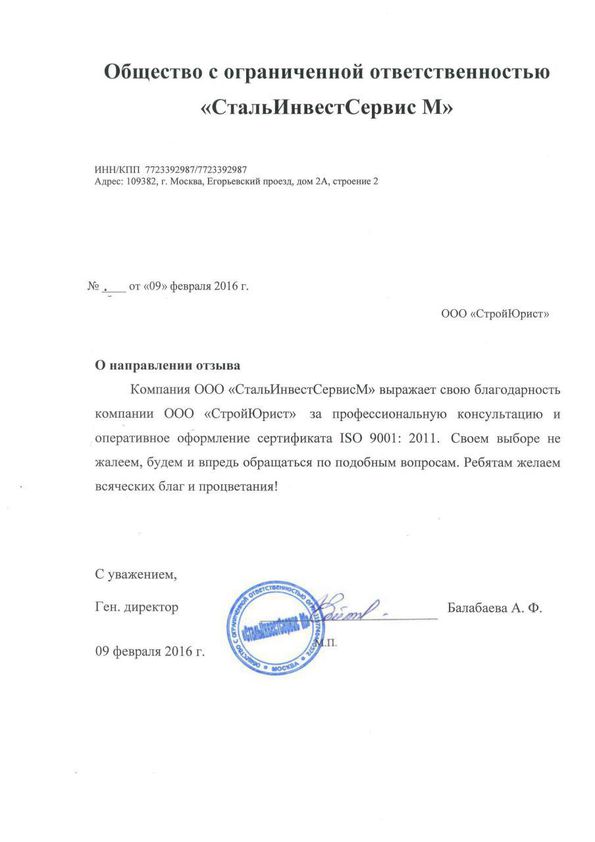 Отзывы клиентов "СтройЮрист" по ISO в Щелково