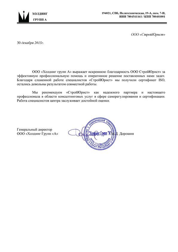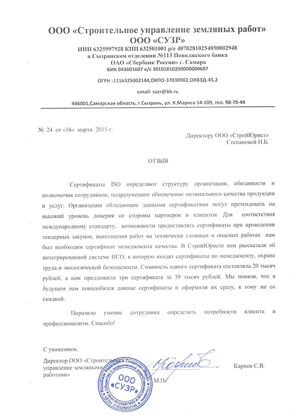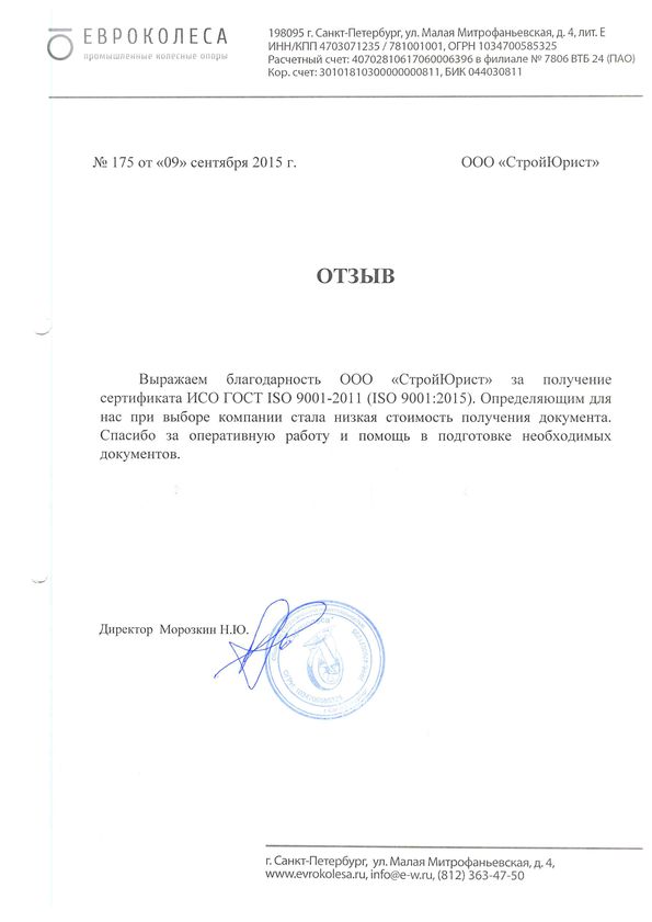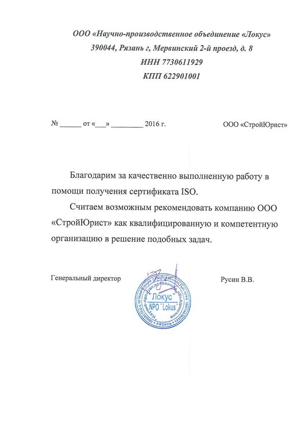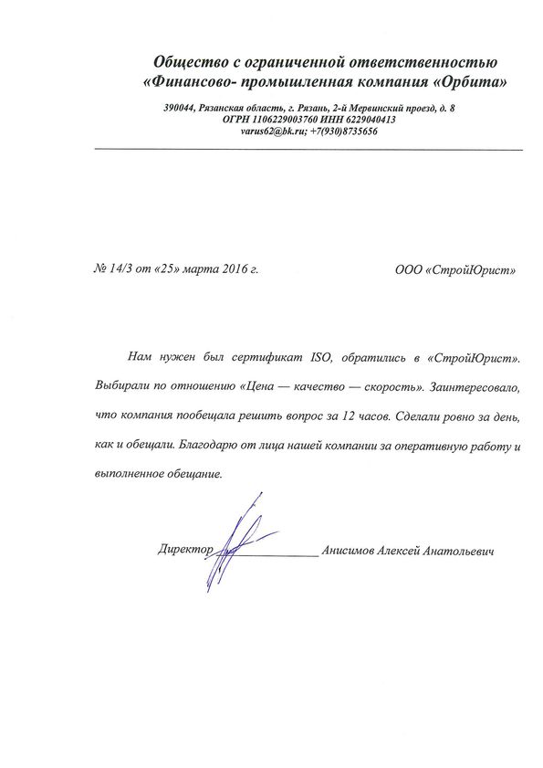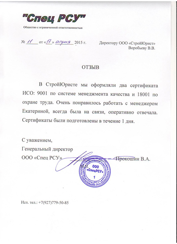 Отзывы клиентов "СтройЮрист" по ISO в Щелково