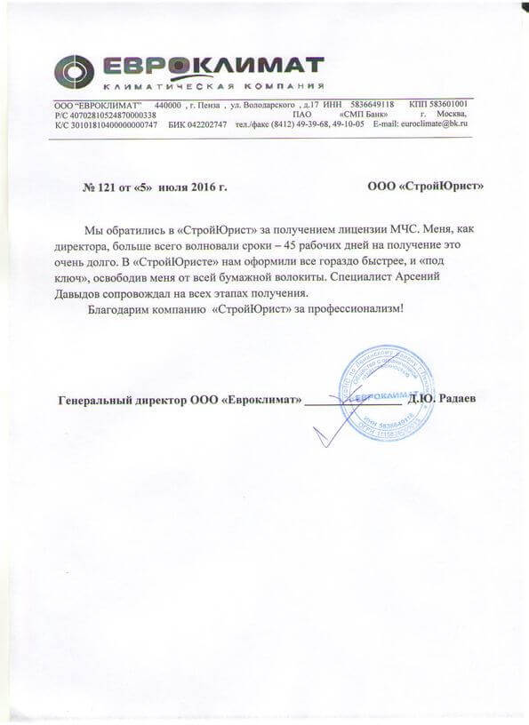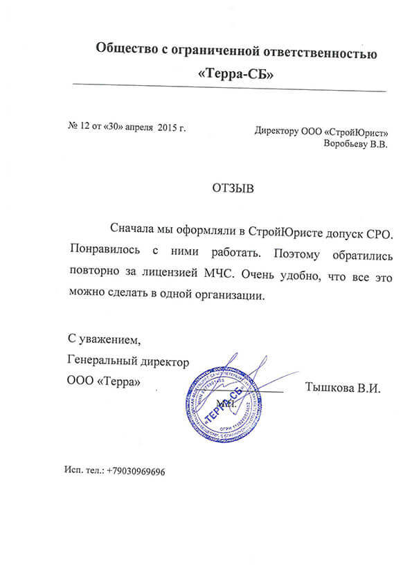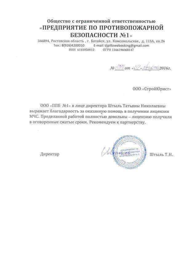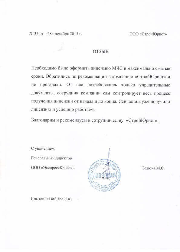Отзывы клиентов "СтройЮрист" по лицензированию МЧС в Щелково