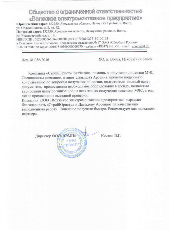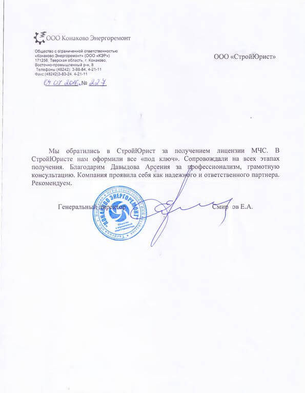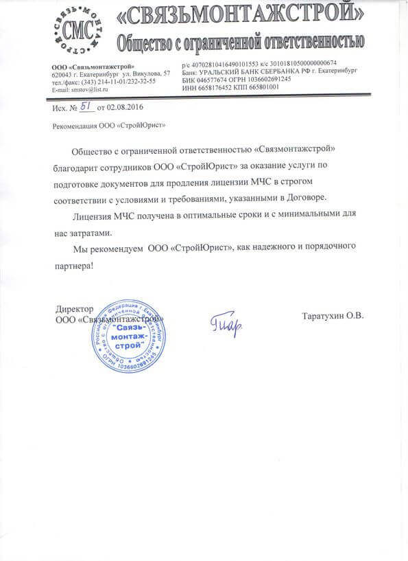 Отзывы клиентов "СтройЮрист" по лицензированию МЧС в Щелково