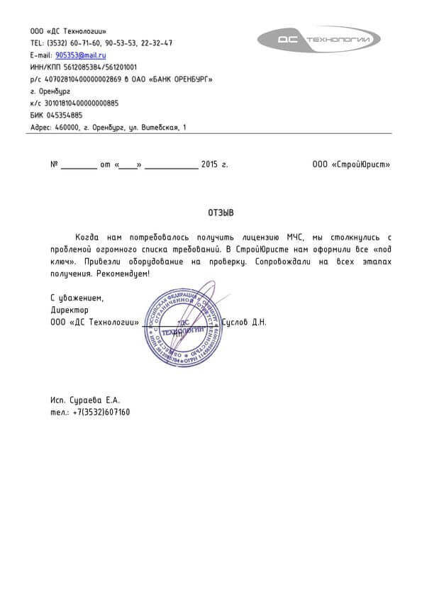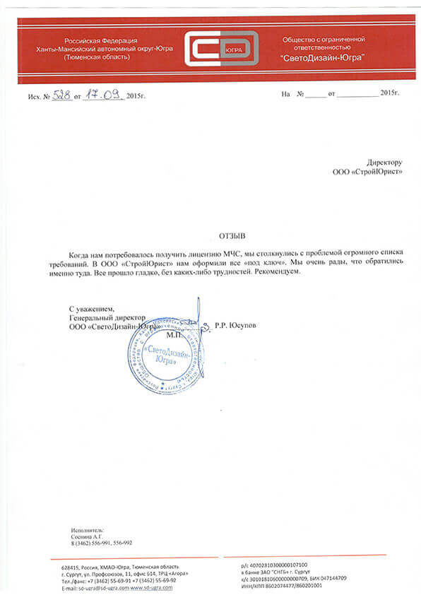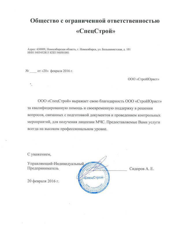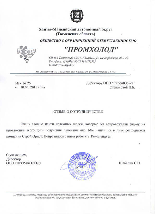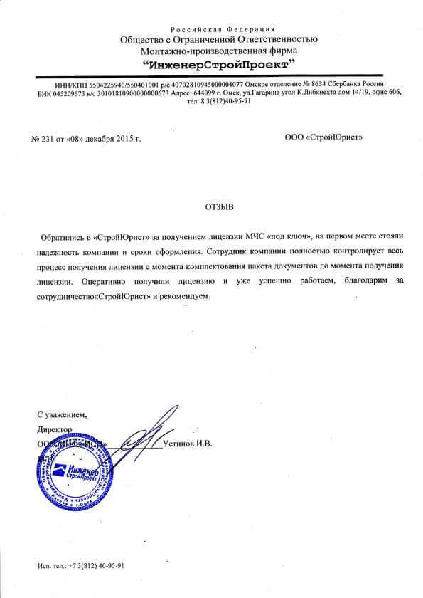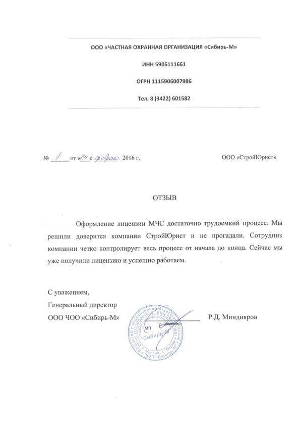 Отзывы клиентов "СтройЮрист" по лицензированию МЧС в Щелково