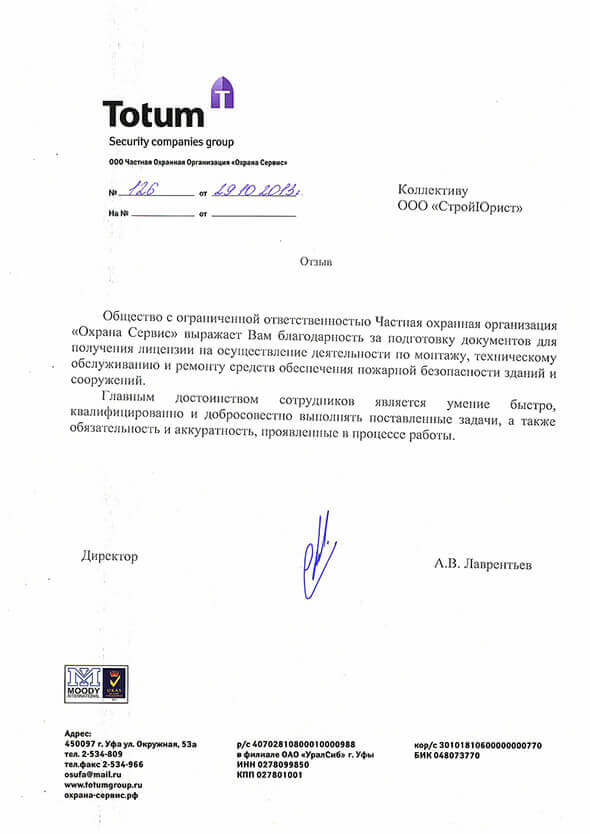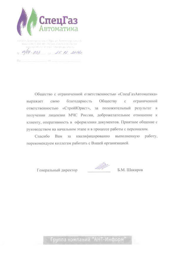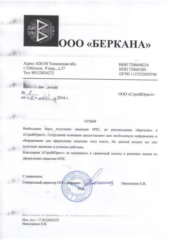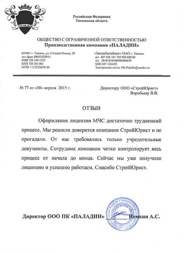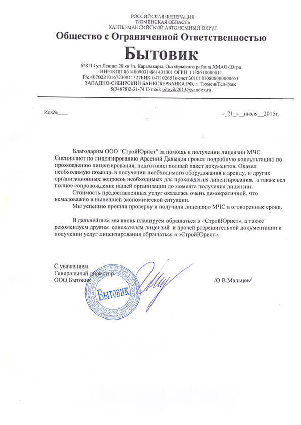 Отзывы клиентов "СтройЮрист" по лицензированию МЧС в Щелково