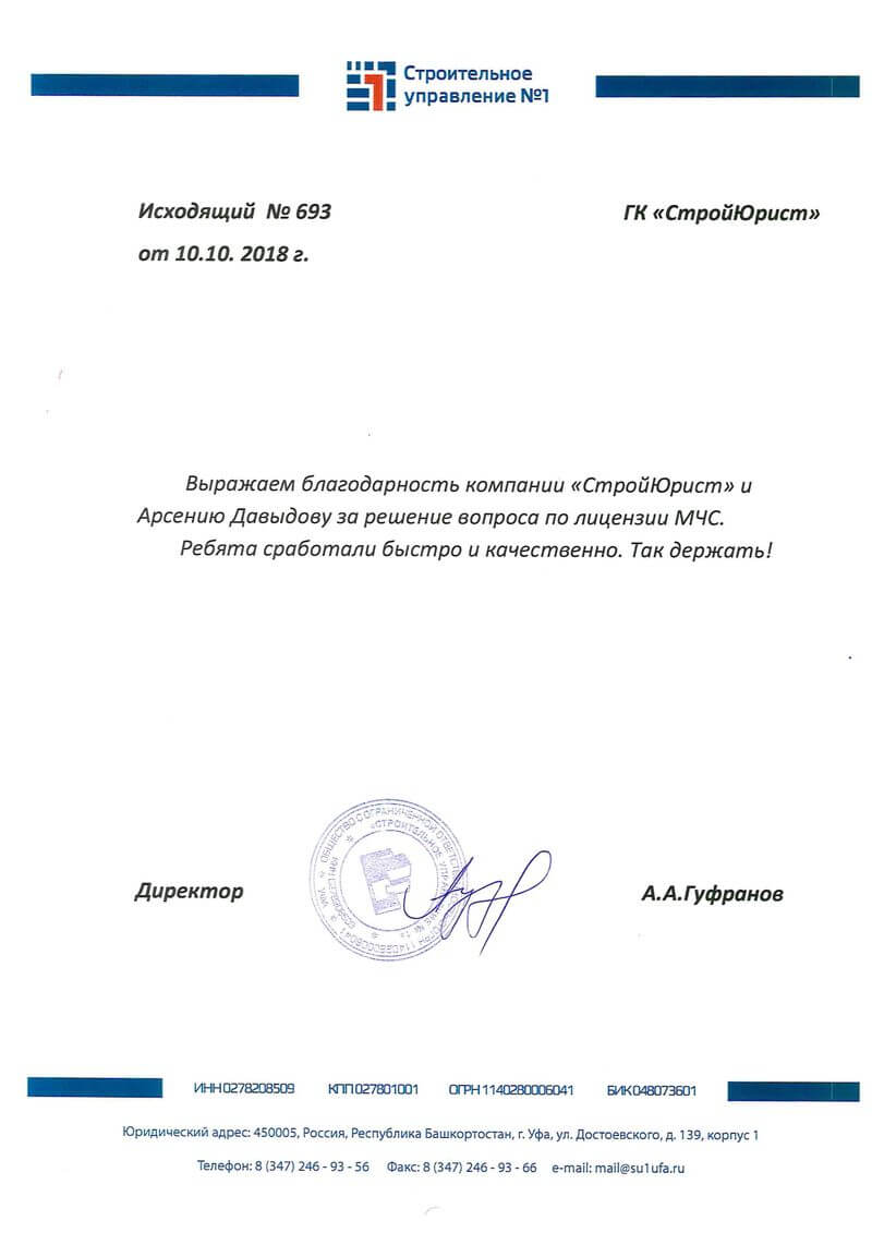 Отзывы клиентов "СтройЮрист" по лицензированию МЧС в Щелково