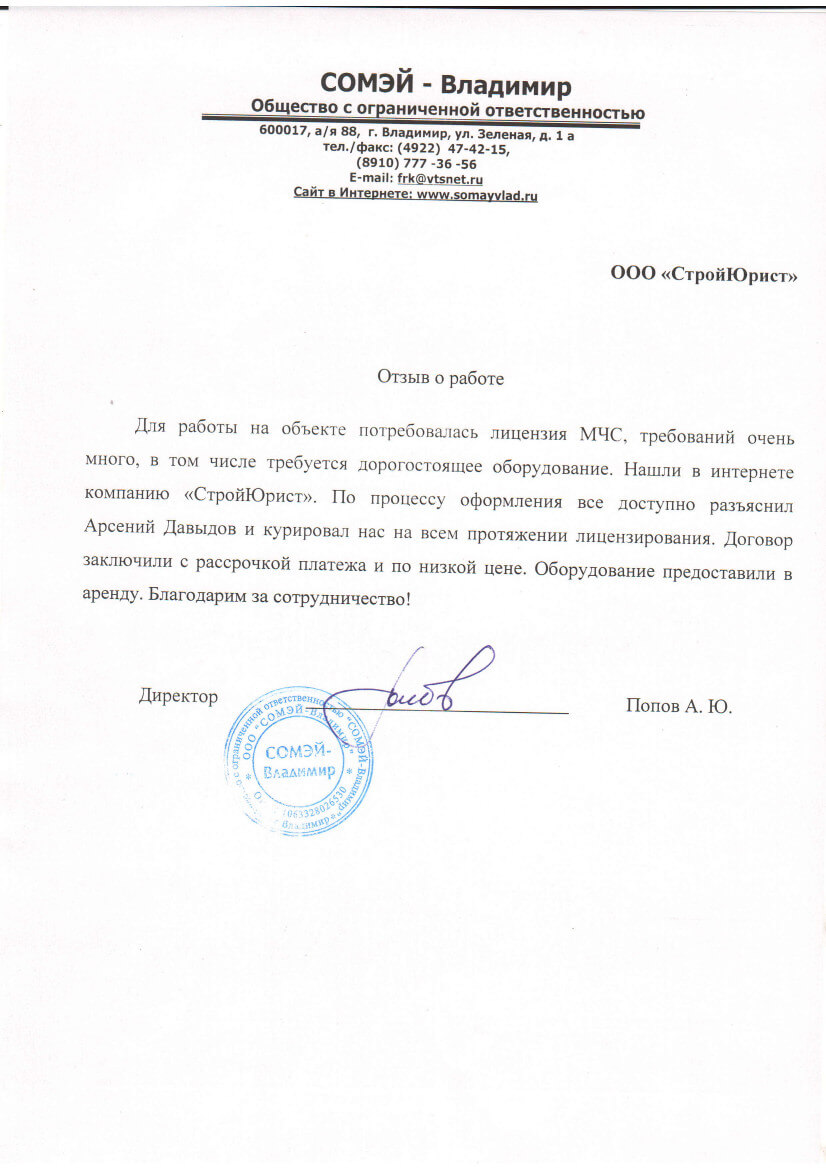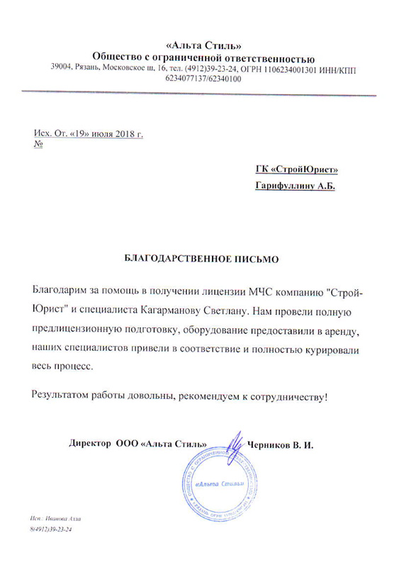Отзывы клиентов "СтройЮрист" по лицензированию МЧС в Щелково