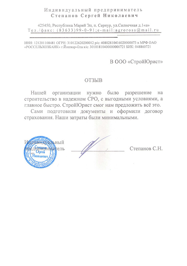 Отзывы клиентов "СтройЮрист" по вступлению в СРО в Щелково