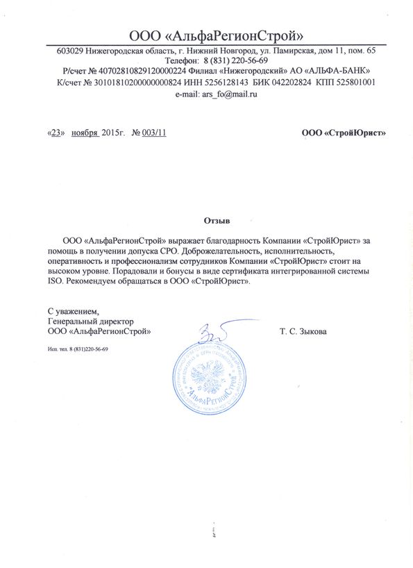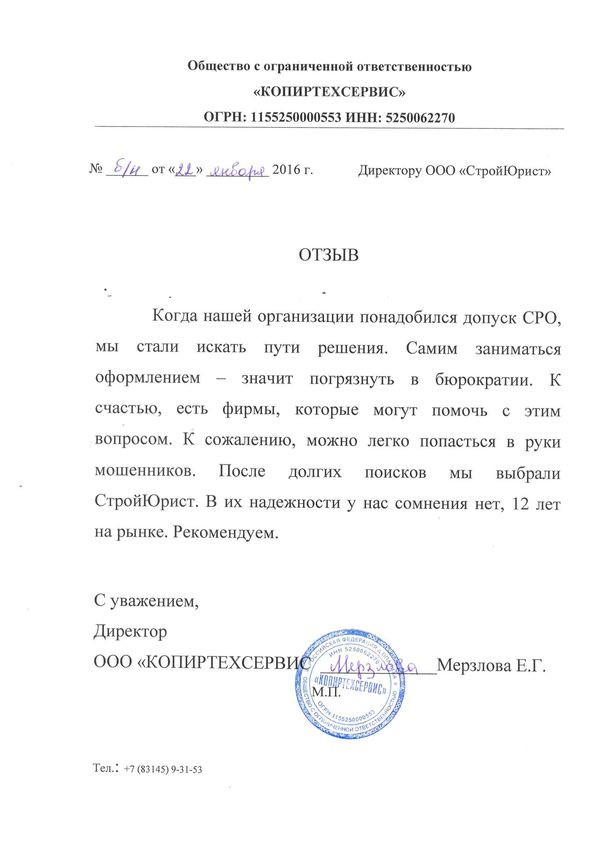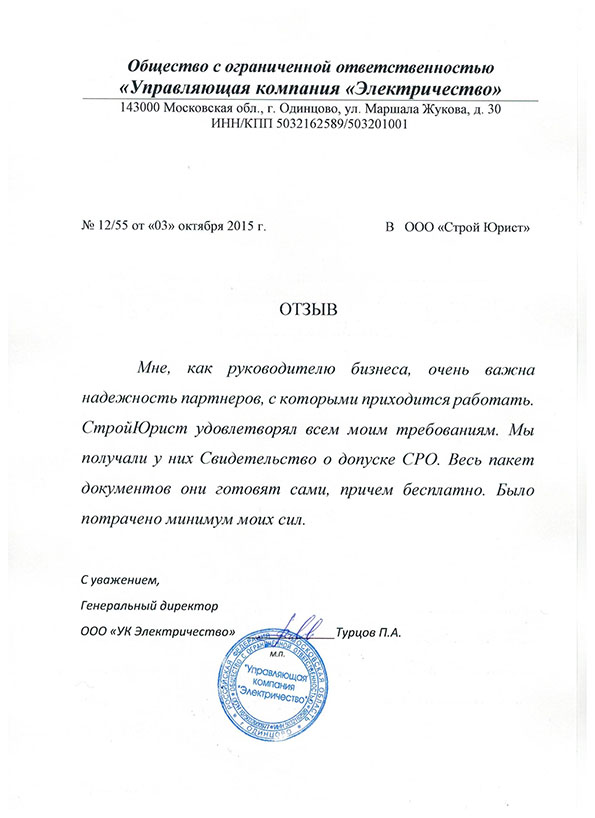 Отзывы клиентов "СтройЮрист" по вступлению в СРО в Щелково