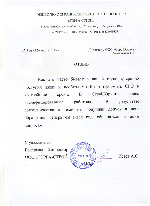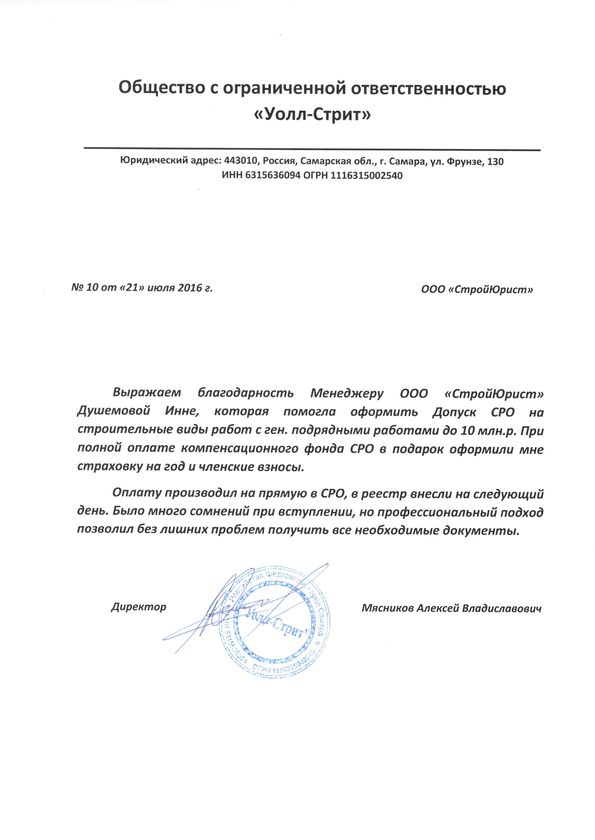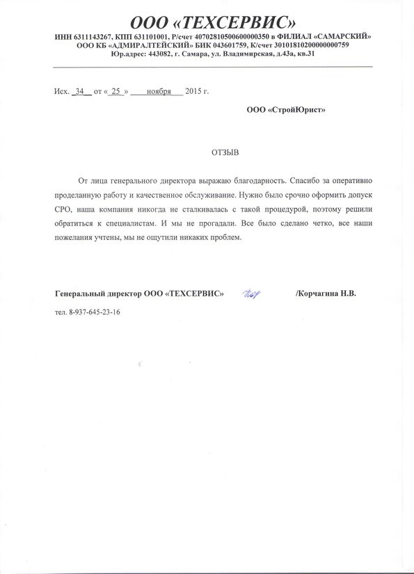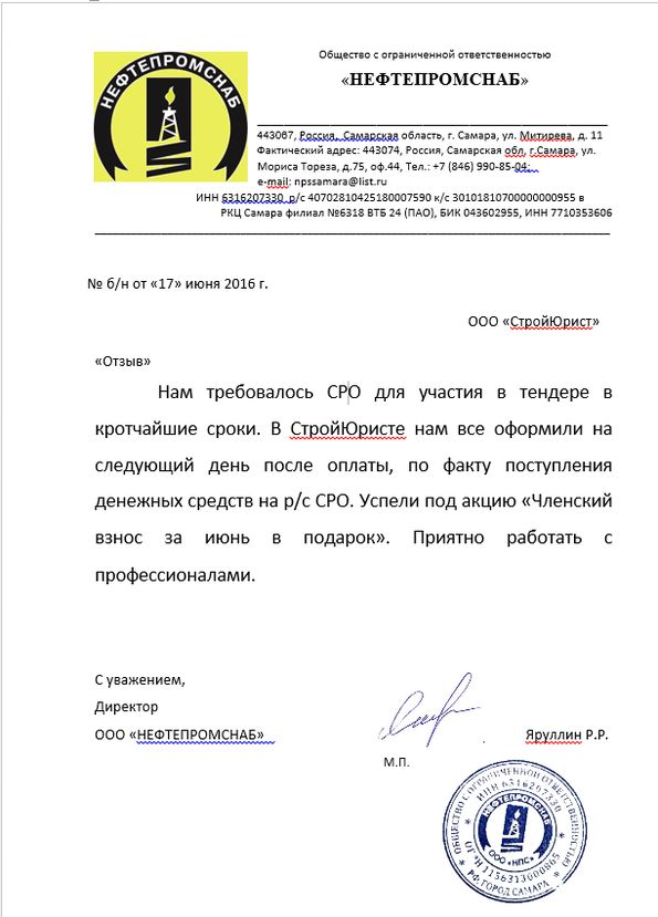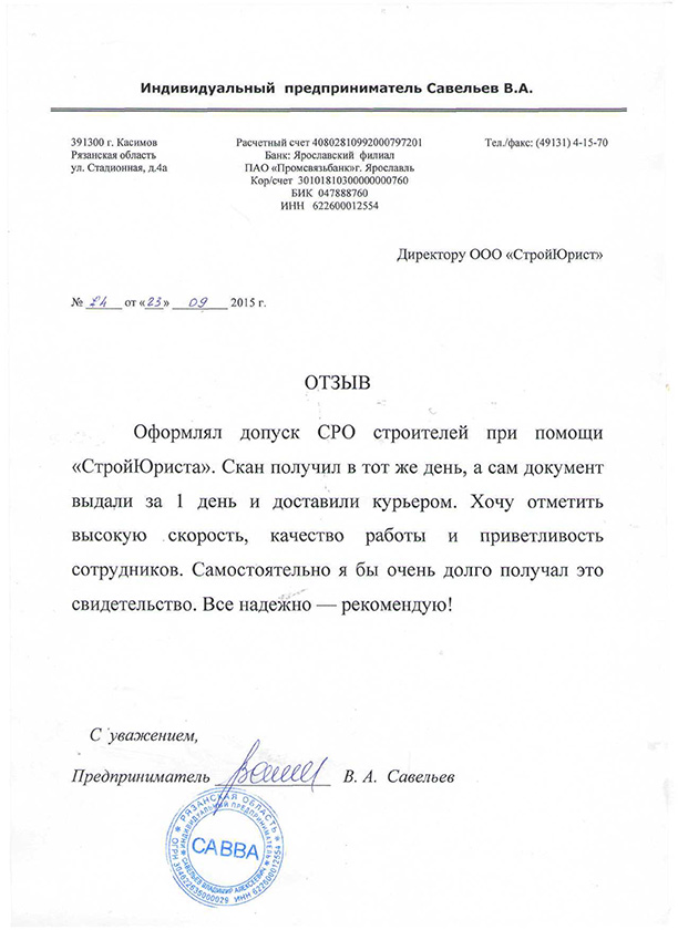 Отзывы клиентов "СтройЮрист" по вступлению в СРО в Щелково