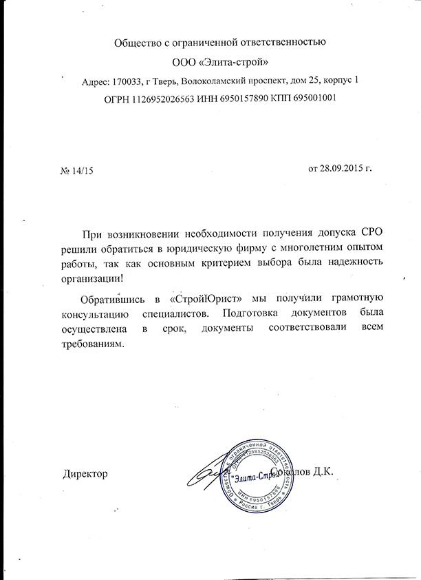 Отзывы клиентов "СтройЮрист" по вступлению в СРО в Щелково