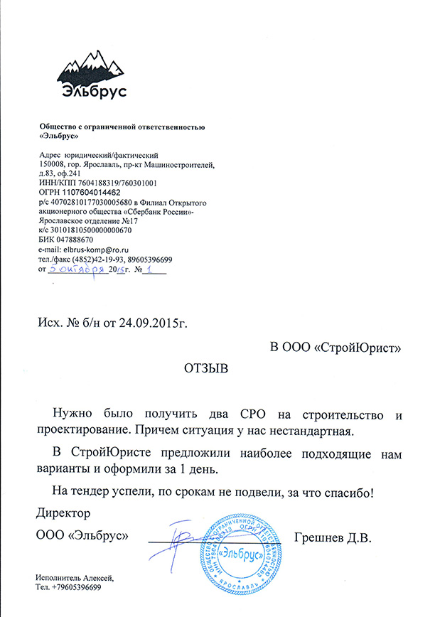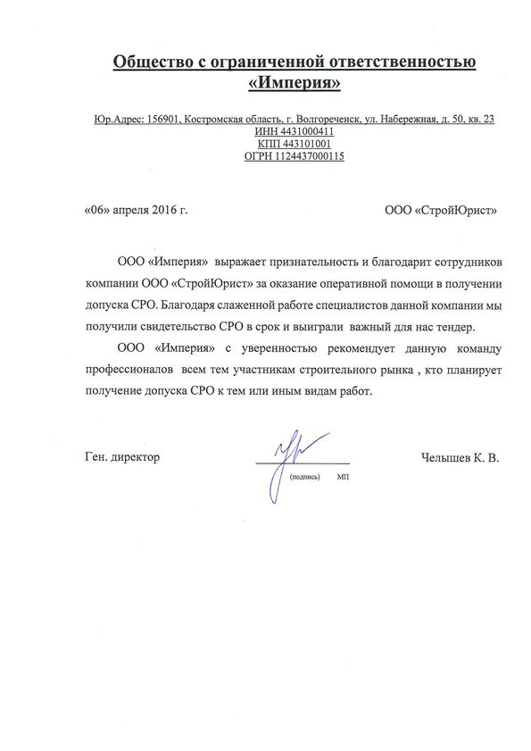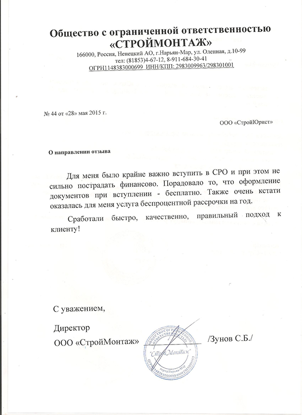 Отзывы клиентов "СтройЮрист" по вступлению в СРО в Щелково