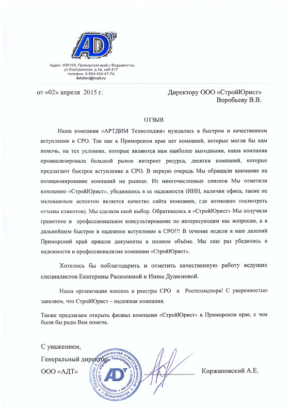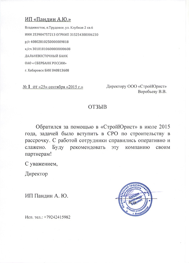 Отзывы клиентов "СтройЮрист" по вступлению в СРО в Щелково