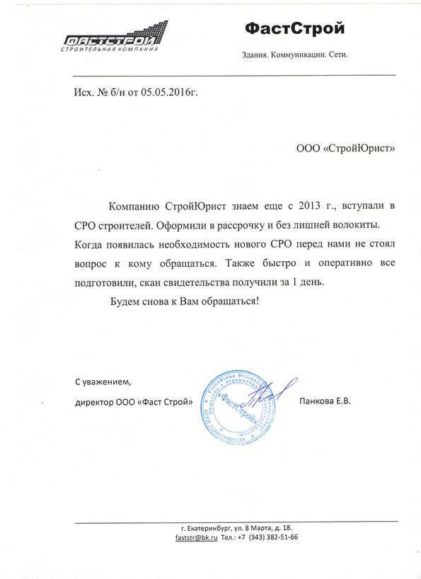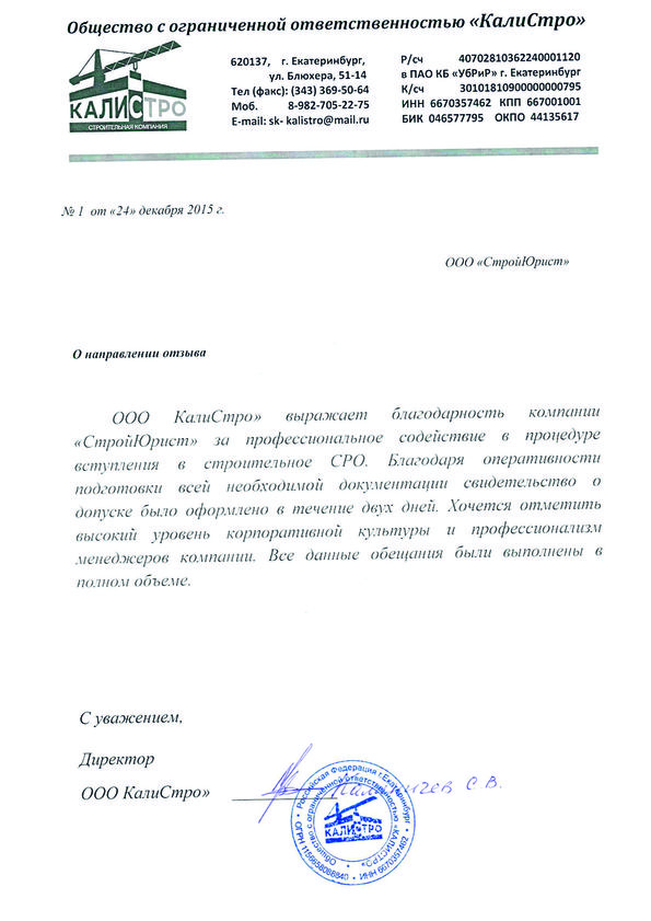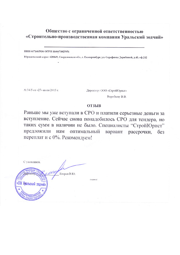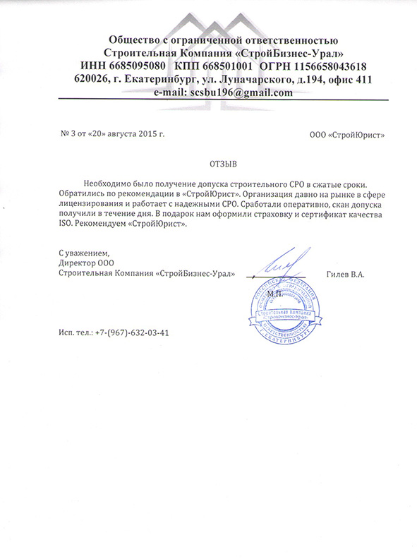Отзывы клиентов "СтройЮрист" по вступлению в СРО в Щелково