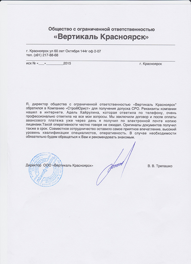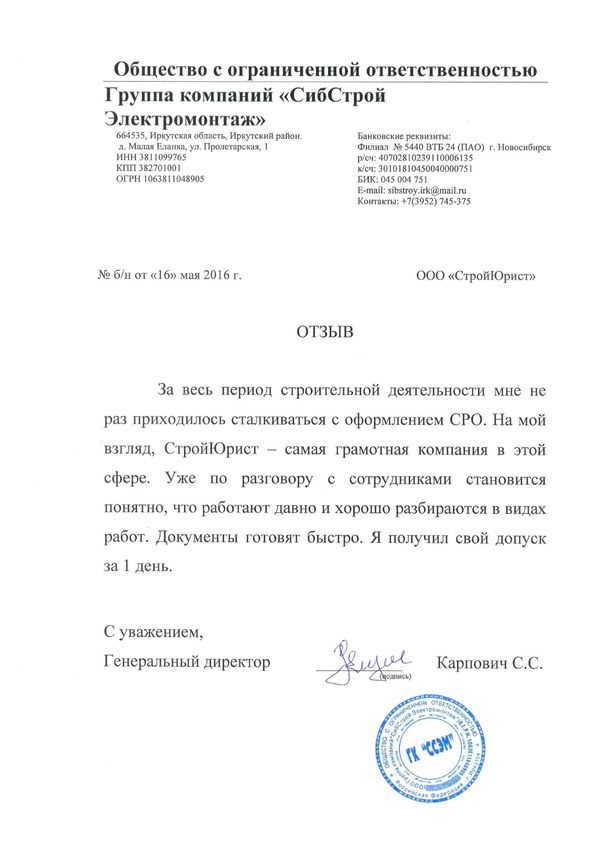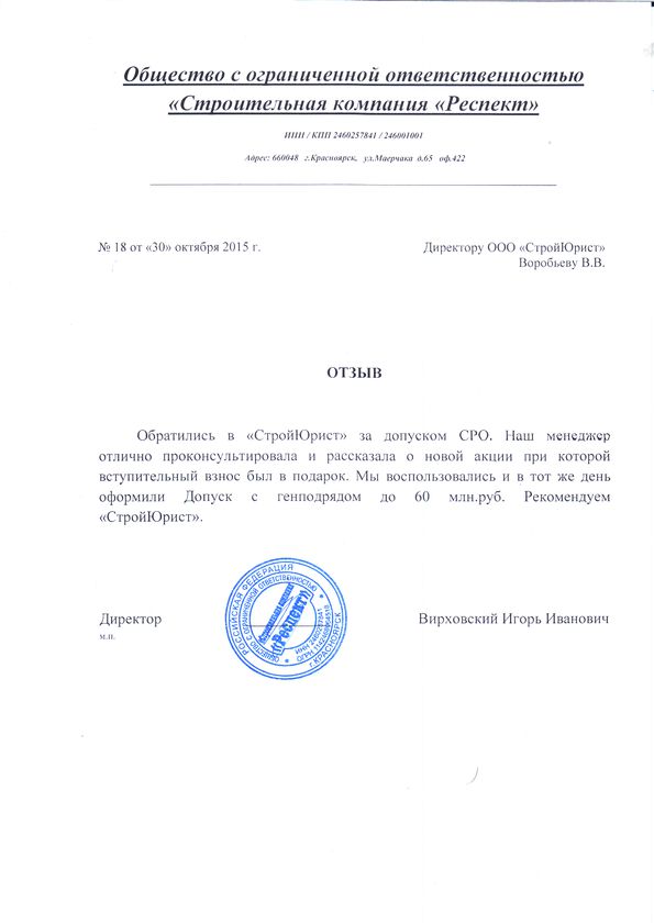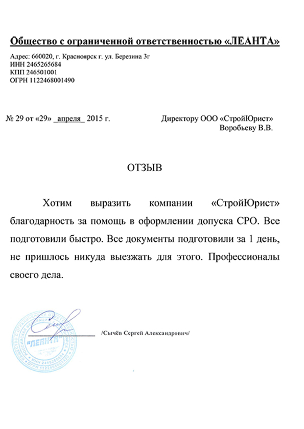 Отзывы клиентов "СтройЮрист" по вступлению в СРО в Щелково
