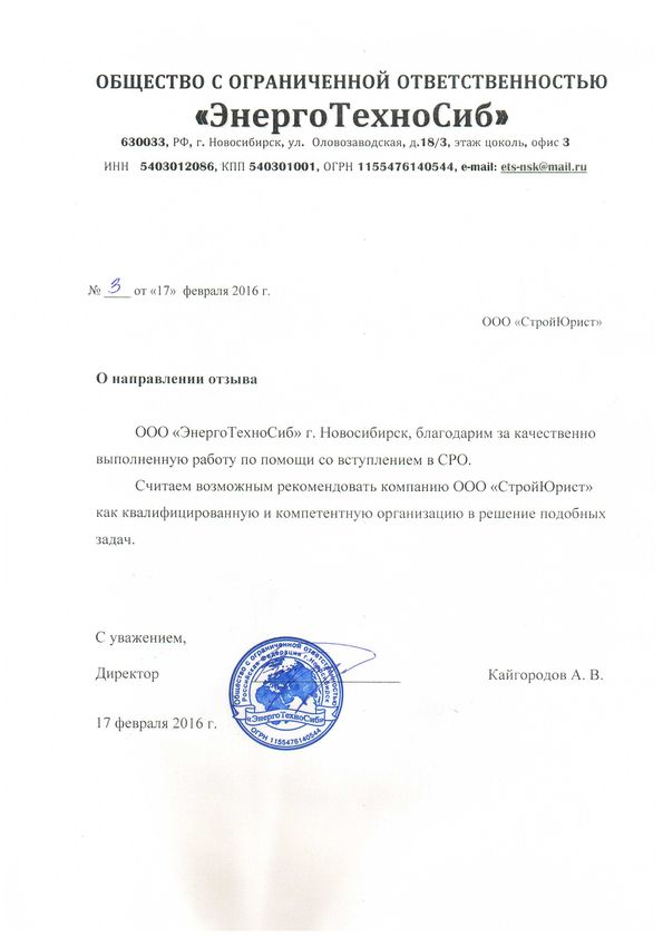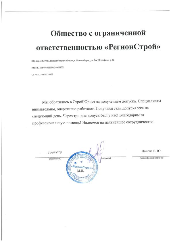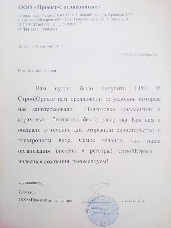 Отзывы клиентов "СтройЮрист" по вступлению в СРО в Щелково