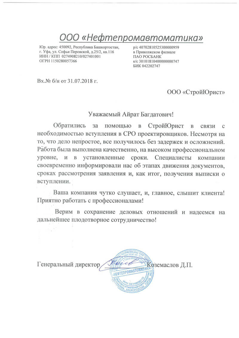 Отзывы клиентов "СтройЮрист" по вступлению в СРО в Щелково