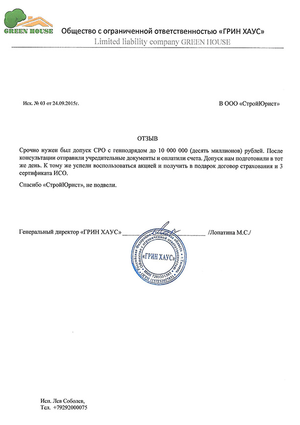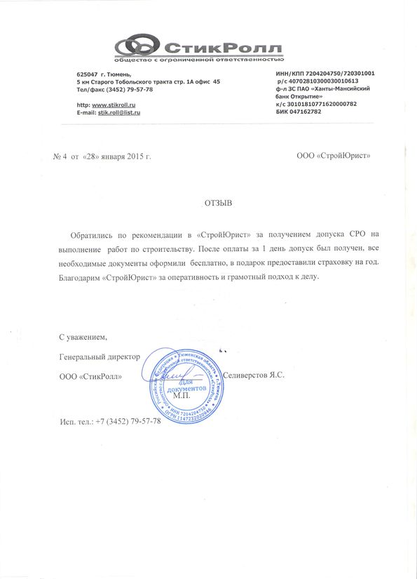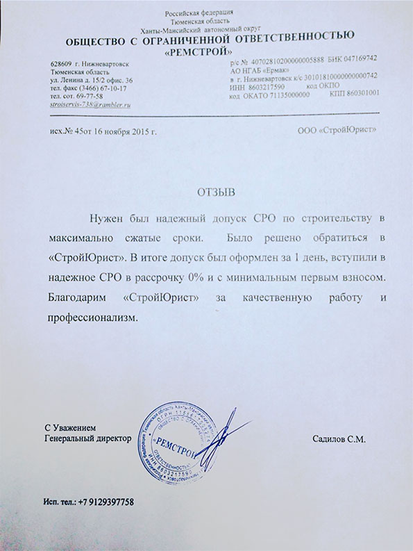 Отзывы клиентов "СтройЮрист" по вступлению в СРО в Щелково