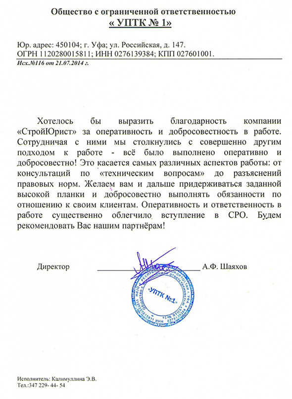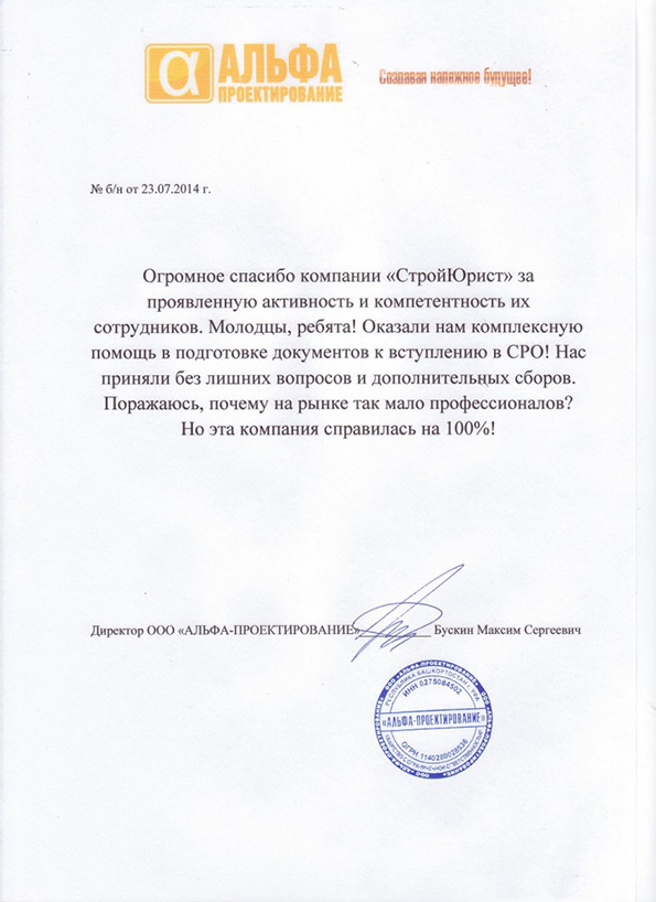 Отзывы клиентов "СтройЮрист" по вступлению в СРО в Щелково