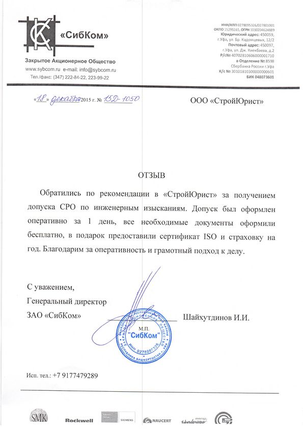 Отзывы клиентов "СтройЮрист" по вступлению в СРО в Щелково