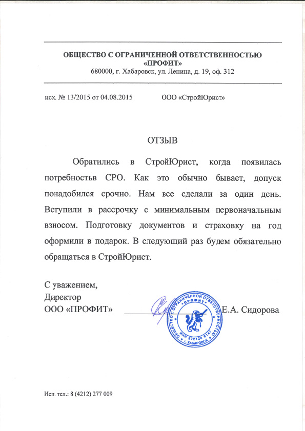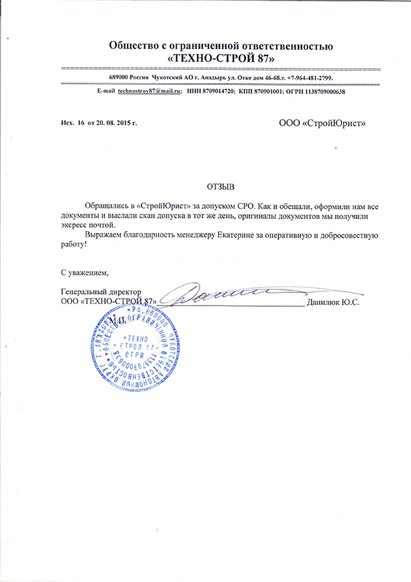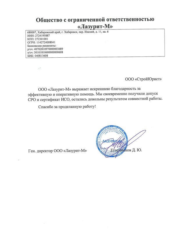 Отзывы клиентов "СтройЮрист" по вступлению в СРО в Щелково