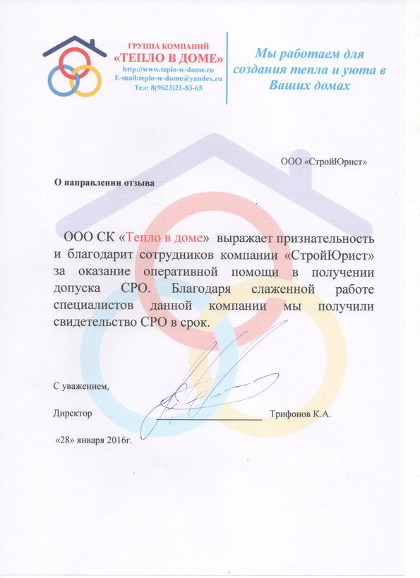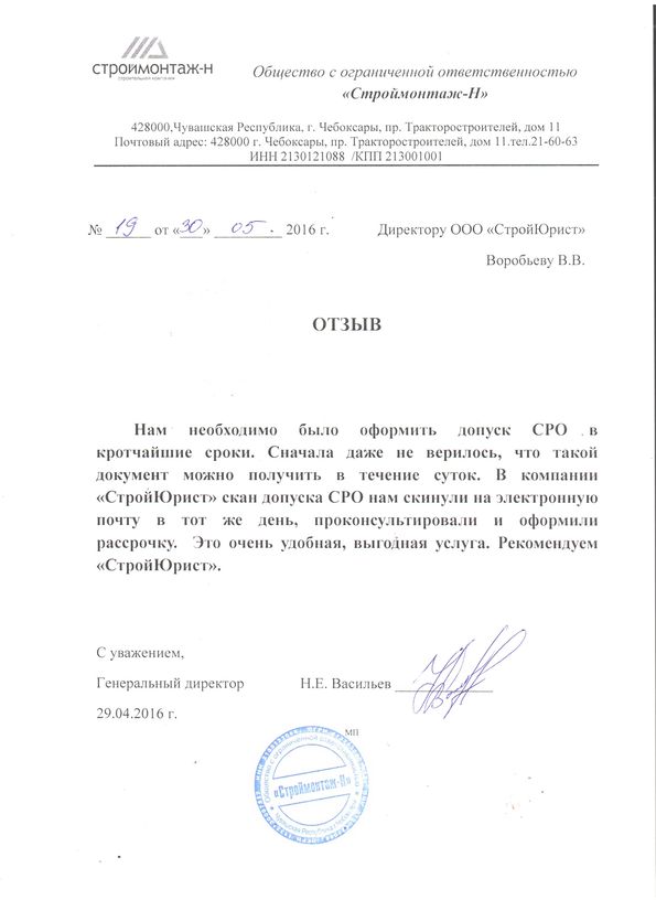 Отзывы клиентов "СтройЮрист" по вступлению в СРО в Щелково